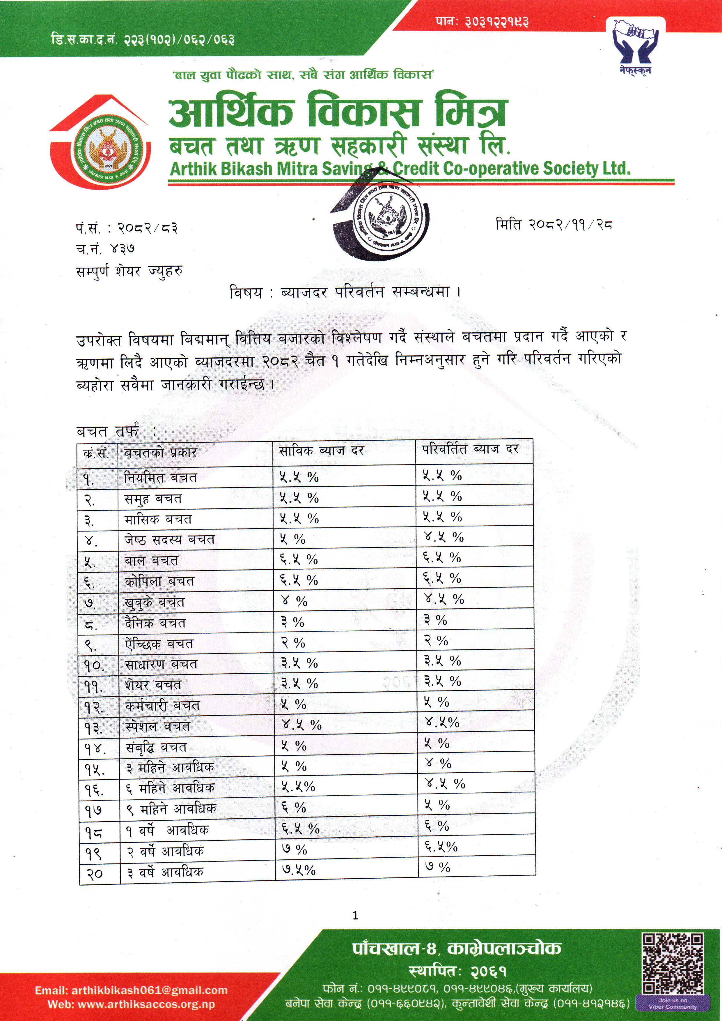 Notice regarding Interest Rate Change